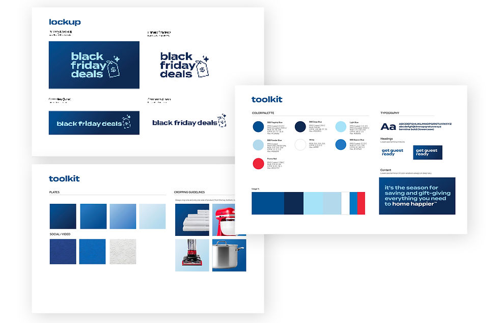 In retail, Black Friday is our super bowl. Studies found that in 2021 consumers tackle their holiday shopping across a two week span, not one single day. The pandemic, technology, and faster shipping also making an impact on how and where consumers shop. Our online digital experience will be crucial to our success. With that in mind, we needed to come up with a solution that communicates value, captures the energy of the season, and has strong brand recognition.